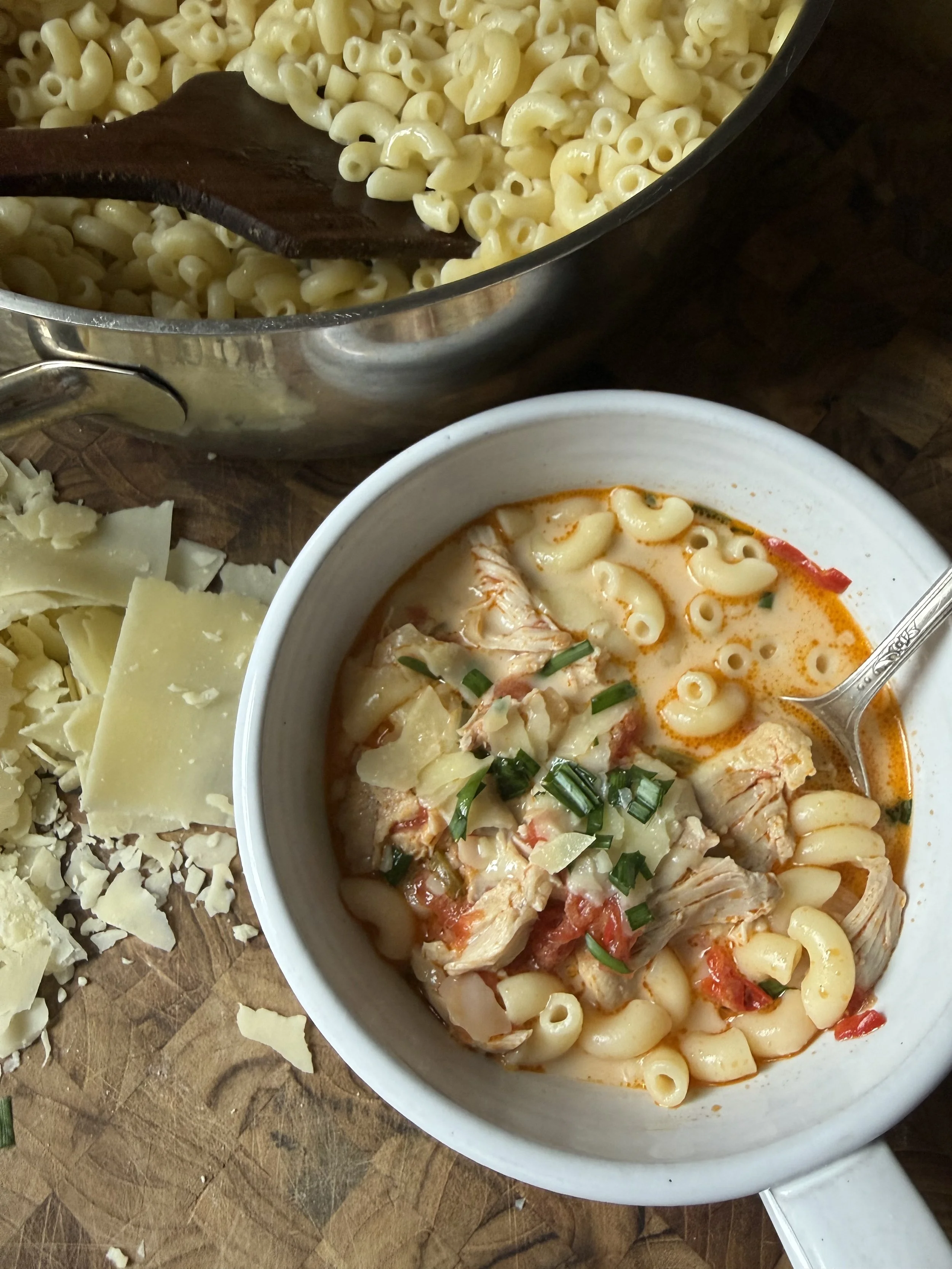 We’re keeping things simple here: no celery, no jalapeños, and no oregano — just a classic mix of onion, bell pepper, tomato, and rich cream that brings everything together. A handful of pasta makes it hearty and satisfying, while a sprinkle of Parmesan on top adds that irresistible Italian touch.